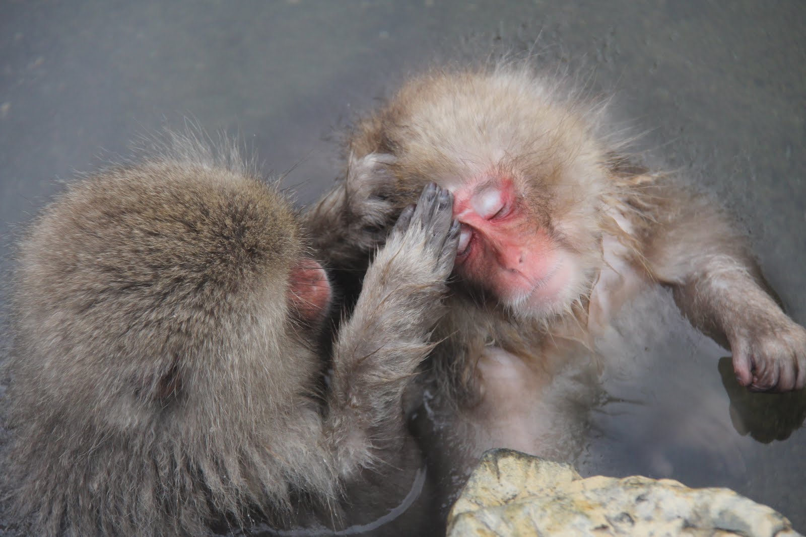The monkeys are just amazing. They just laze about in the hot water preening each other.