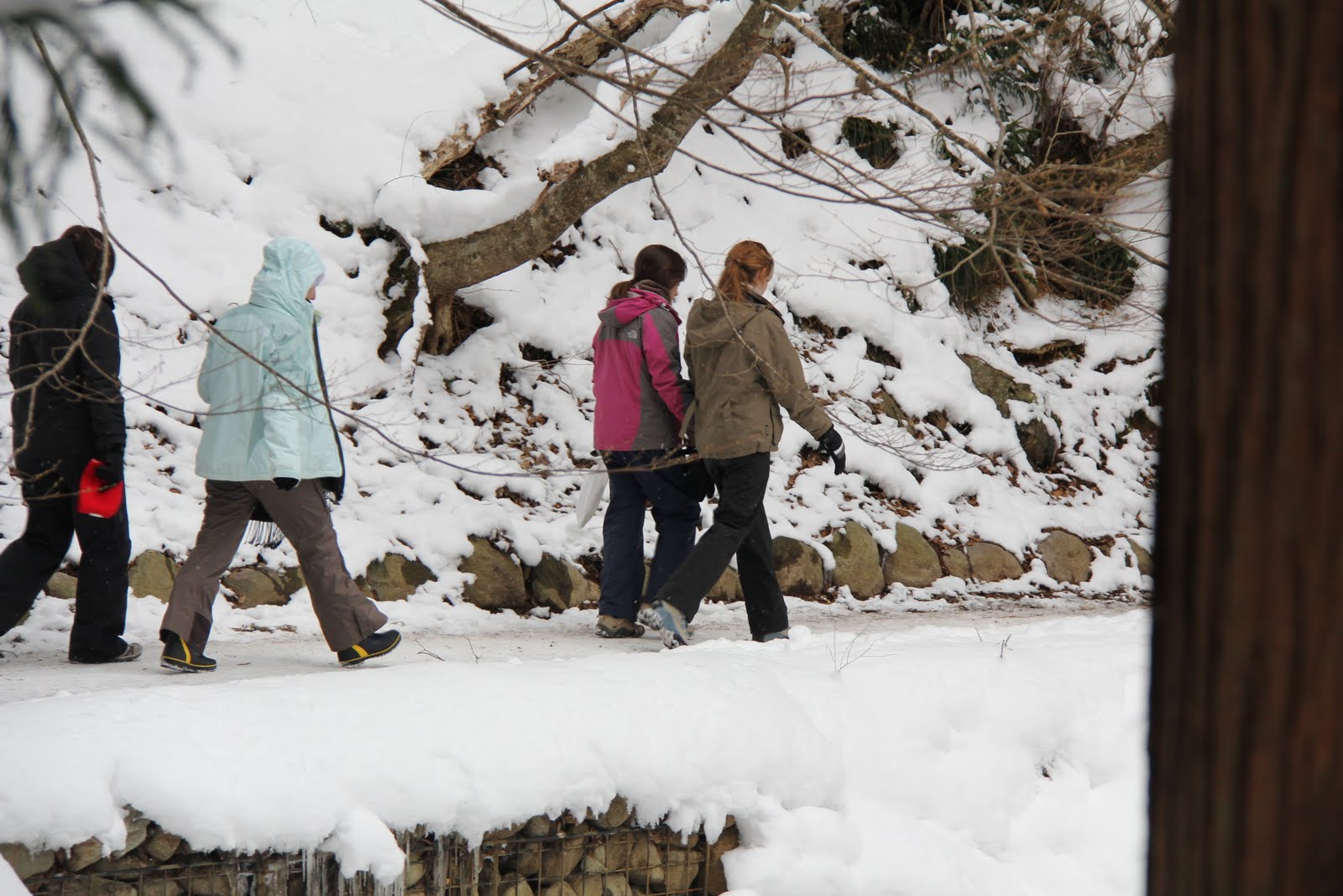 Ally, Claire, Lee and I walking back through the forest after seeing the snow monkeys.
